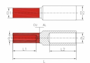 Type D1±0.2 d1±0.2 D2±0.2 d2±0.2 L1±2 L2±2 L±2